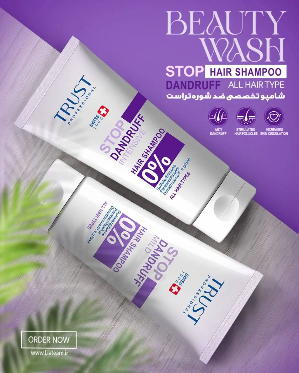 ۲. شامپو تخصصی ضد شوره مقاوم تراست (مناسب شوره چرب و مزمن)